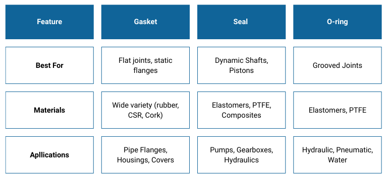 Gasket vs Seal vs O-Ring — Key Differences